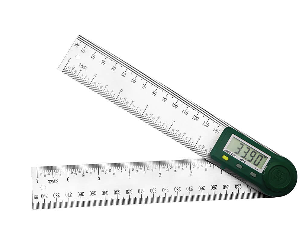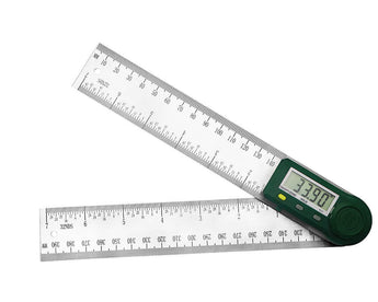 Den robusta metallkonstruktionen har både tum- och millimetermått på båda sidor för extra bekvämlighet. Vid 180° kan vinkelmätaren dessutom användas som en 400 mm linjal. Med en imponerande upplösning på 0,1° och en noggrannhet på 0,3° kan du lita på precisa mätningar i alla situationer.