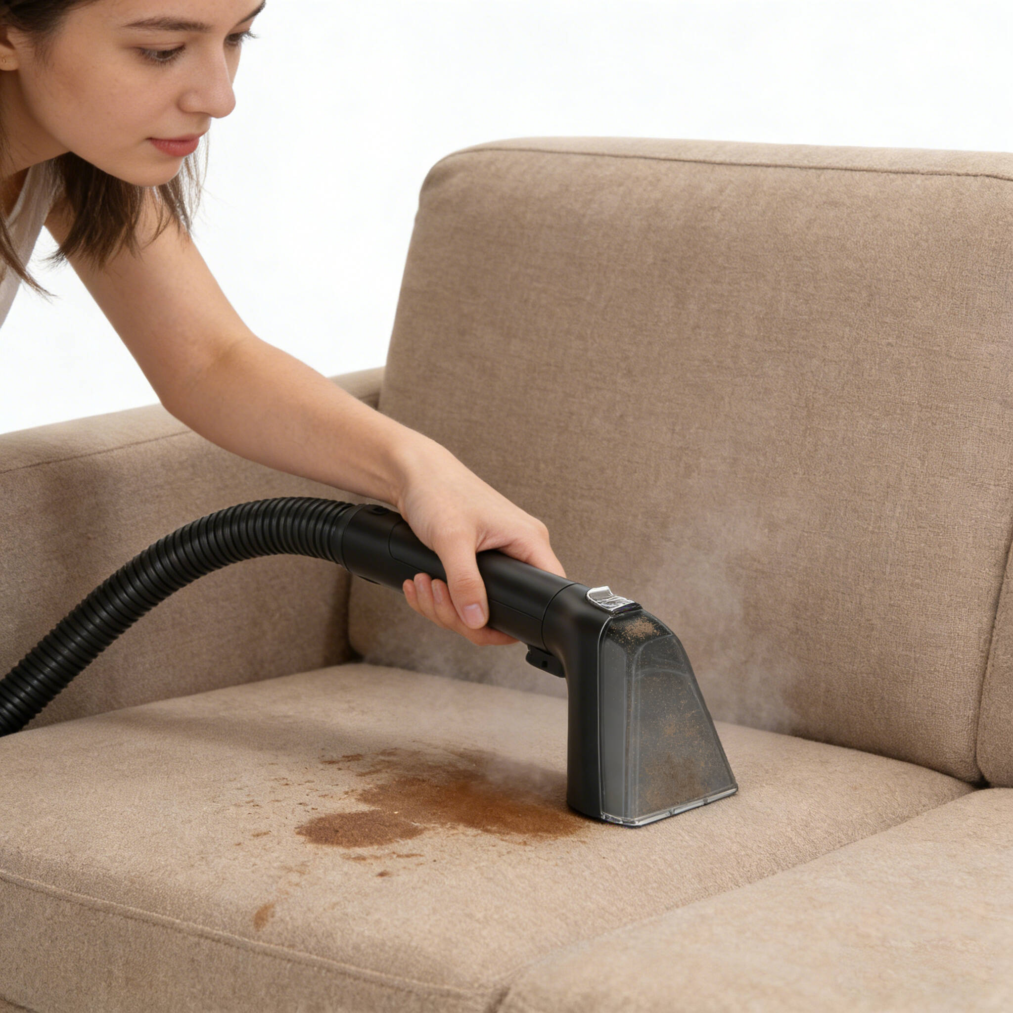 Ånga (100°C) med sug: För djupgående desinficering och fläckborttagning i tjocka mattor och möbler.