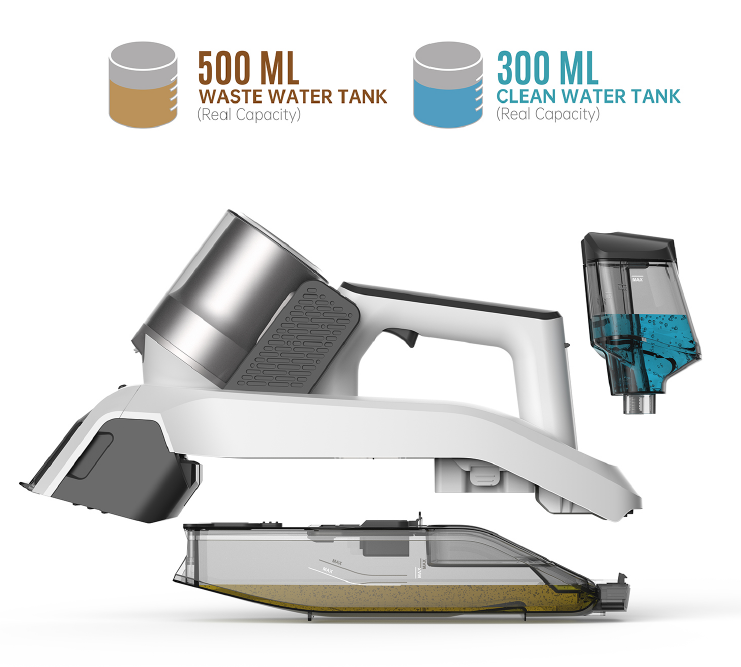 Tankkapacitet: Rent vatten 300 ml / Smutsvatten 500 ml
