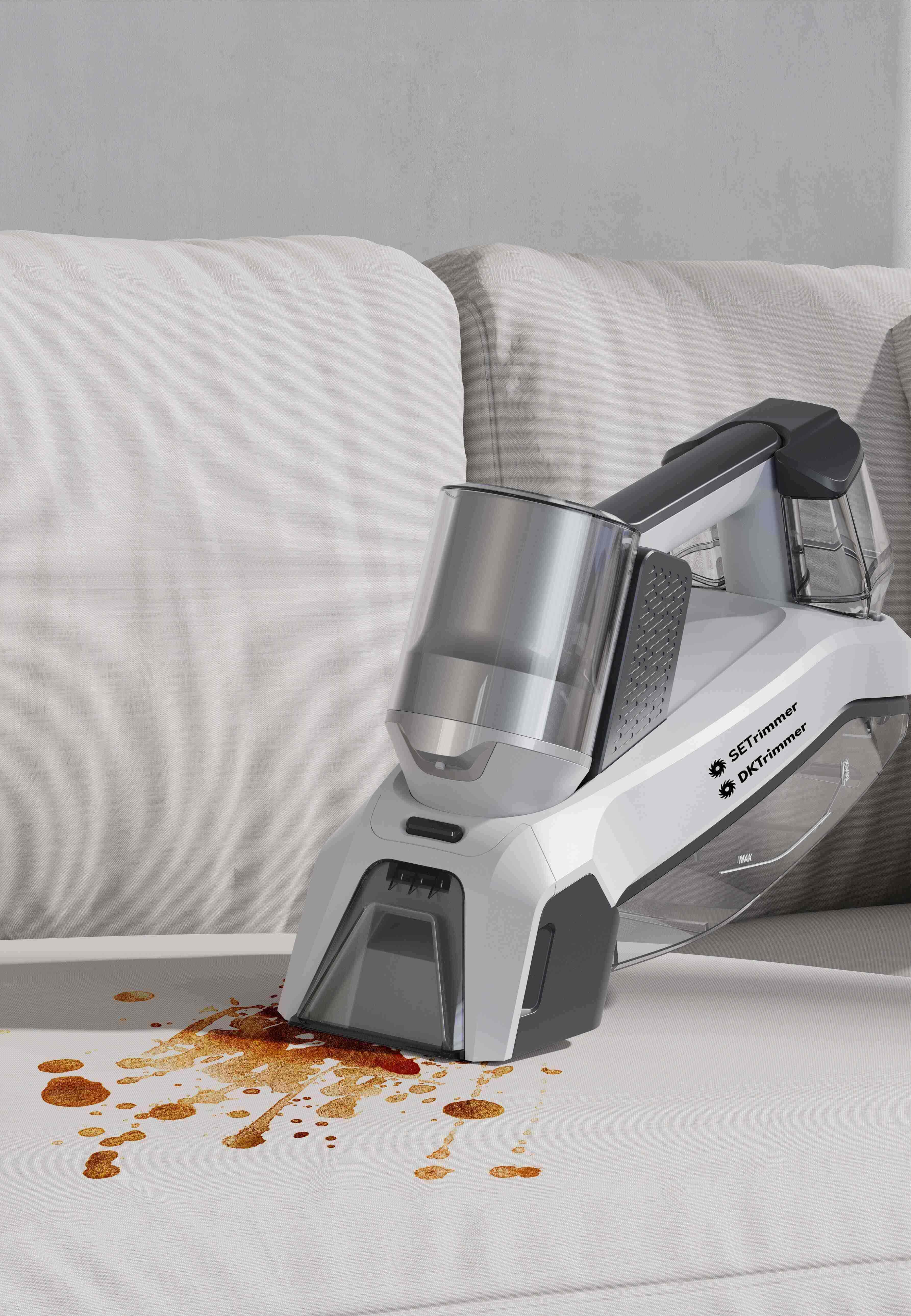 Ta bort fläckar och smuts enkelt och effektivt Bli av med fläckiga mattor, soffor och bilsäten. Denna lätta och batteridrivna mattvätt är din genväg till rena textilier i hela hemmet. Maskinen arbetar med ett ytterst effektivt 3-i-1-system: Den sprayar tvålvatten på fläcken, skrubbar loss smutsen med den roterande borsten, och suger till sist upp det smutsiga vattnet i maskinens smutsvattentank – allt i en enda mjuk rörelse.