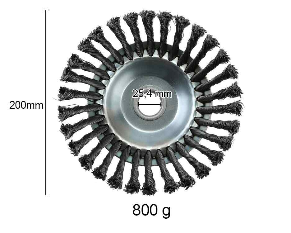 Vår 200 mm stålborste för röjsågar/grästrimmare är gjord för att klara många olika uppgifter i trädgården. Med en större diameter (200 mm) kan du täcka större områden snabbt, vilket gör den idealisk för att ta bort hårt ogräs, gräs, mossa och rost från utomhusytor som plattor, gångar och betong.